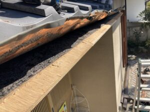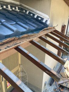 垂木を切断した後、合板下地を上から足して